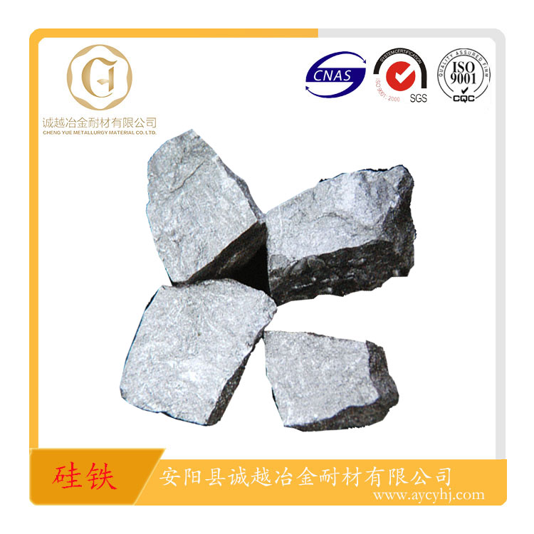 硅鐵是鐵和硅組成的鐵合金。 硅鐵是以焦炭、鋼屑、石英(或硅石)為原料,用電爐冶煉制成的鐵硅合金。由于硅和氧很容易化合成二氧化硅,所以硅鐵常用于煉鋼時作脫氧劑,同時由于SiO2生成時放出大量的熱,在脫氧的同時,對提高鋼水溫度也是有利的。同時,硅鐵還可作為合金元素加入劑,廣泛應(yīng)用于低合金結(jié)構(gòu)鋼、彈簧鋼、軸承鋼、耐熱鋼及電工硅鋼之中,硅鐵在鐵合金生產(chǎn)及化學(xué)工業(yè)中,常用作還原劑。