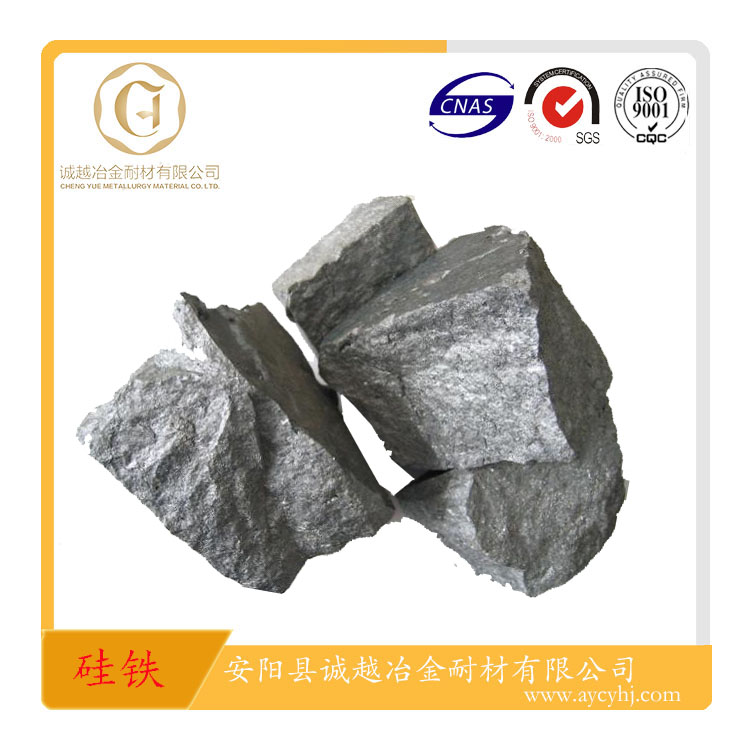 硅鐵是鐵和硅組成的鐵合金。 硅鐵是以焦炭、鋼屑、石英(或硅石)為原料,用電爐冶煉制成的鐵硅合金。由于硅和氧很容易化合成二氧化硅,所以硅鐵常用于煉鋼時(shí)作脫氧劑,同時(shí)由于SiO2生成時(shí)放出大量的熱,在脫氧的同時(shí),對(duì)提高鋼水溫度也是有利的。同時(shí),硅鐵還可作為合金元素加入劑,廣泛應(yīng)用于低合金結(jié)構(gòu)鋼、彈簧鋼、軸承鋼、耐熱鋼及電工硅鋼之中,硅鐵在鐵合金生產(chǎn)及化學(xué)工業(yè)中,常用作還原劑。